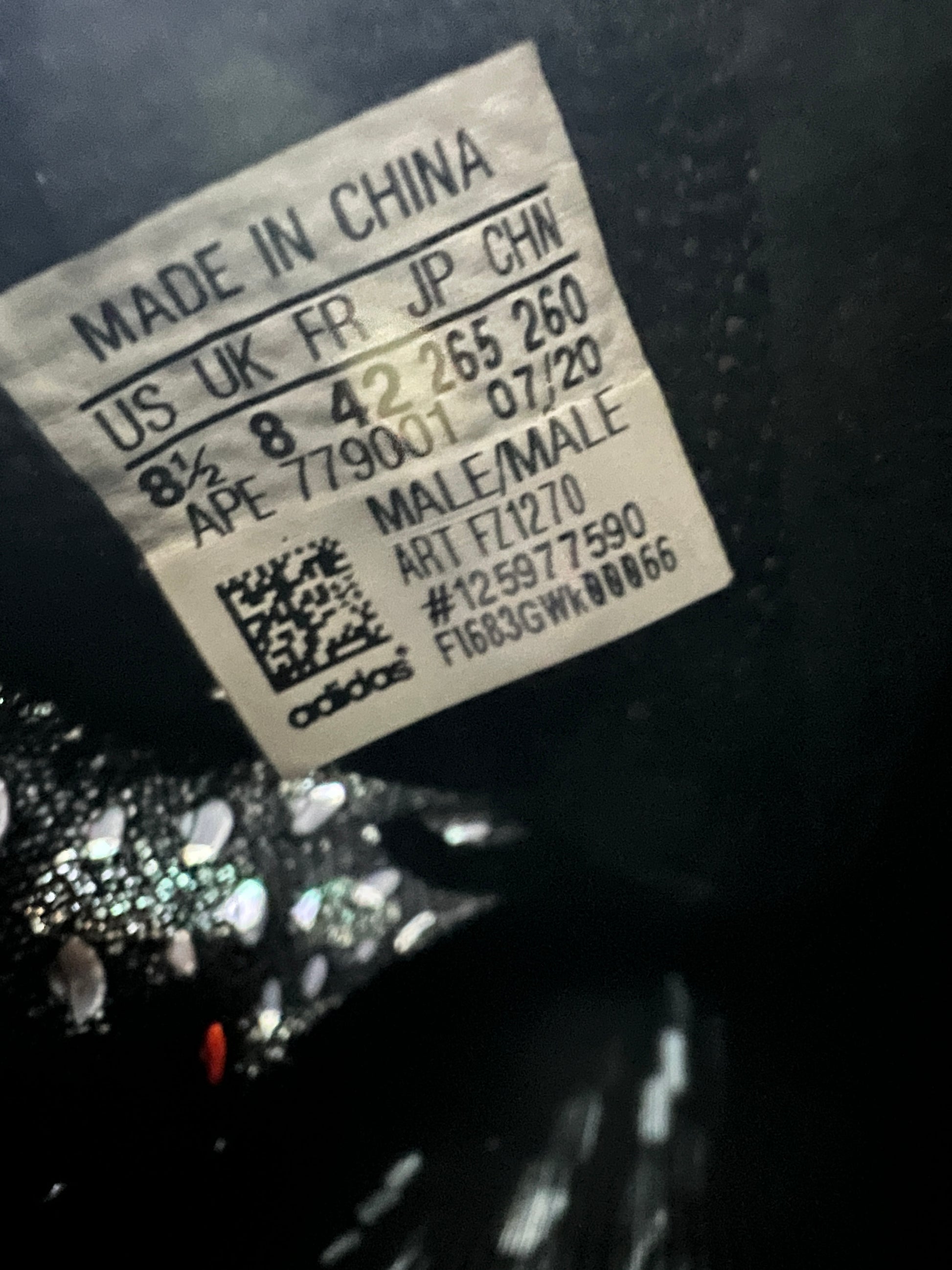 - Dark charcoal Primeknit upper with camo-inspired pattern